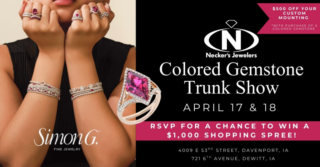Discover the Radiance of Nature: A Dazzling Two-Day Event at Necker’s Jewelers Mark your calendars for an unforgettable experience at Necker’s Jewelers in Davenport & DeWitt! We invite you to join us for our exclusive two-day Colored Gemstone Event on Friday, April 17 & Saturday, April 18, in collaboration with Simon G. Jewelry. Prepare to be mesmerized as we […]