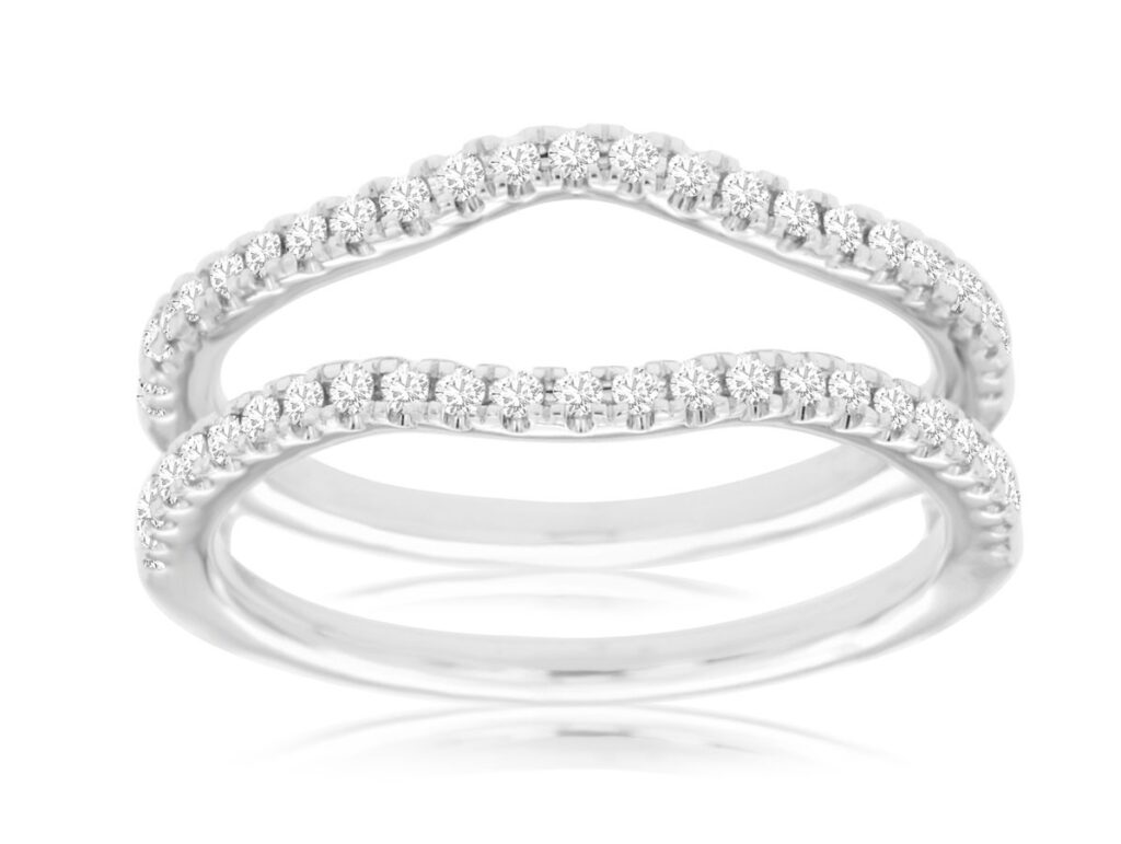 Two delicate diamond bands rise and dip in perfect harmony, creating a graceful chevron silhouette that frames the finger with contemporary elegance. This double band ring offers a fresh twist on classic sparkle, with each round diamond meticulously set to maximize brilliance and fluidity. A luminous choice for stacking—or stunning enough to wear all on its own.