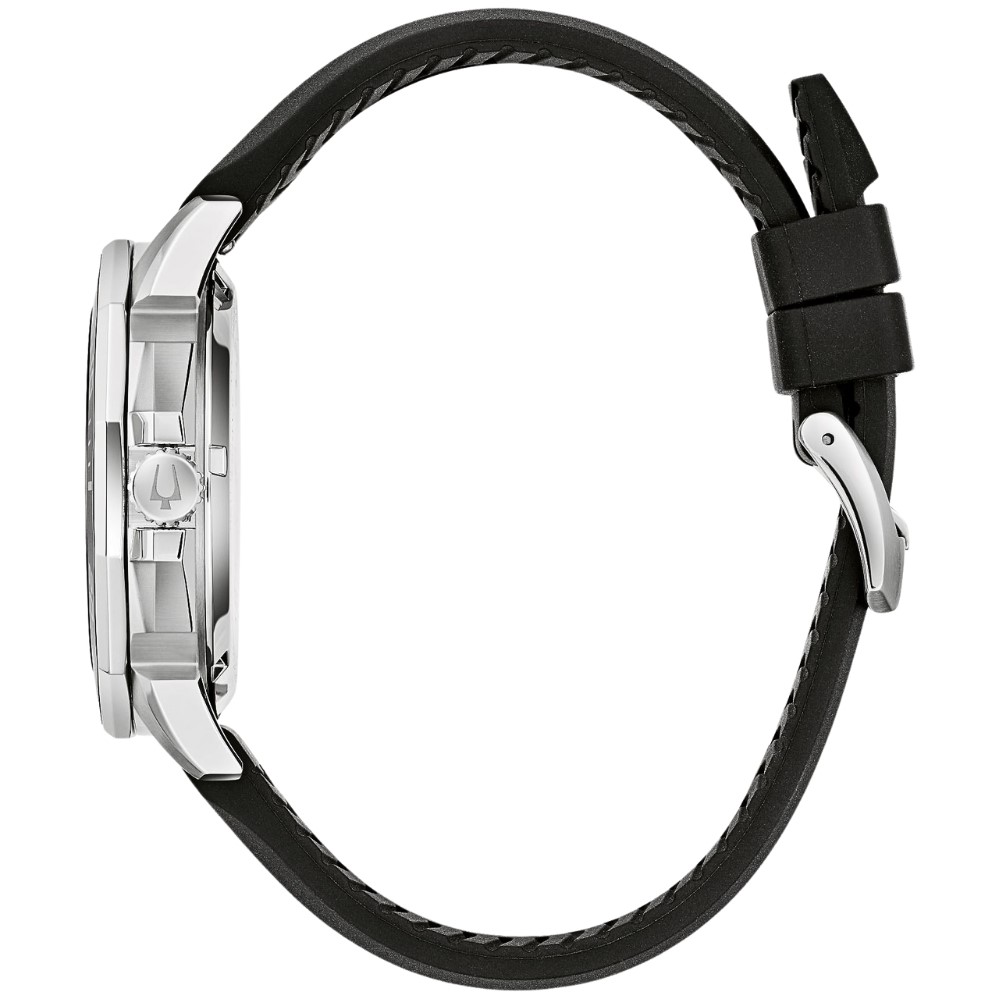 Product Description: This men’s sport timepiece combines bold design with advanced technology. It features a 43mm stainless steel case with brushed facets and polished accents, offering both durability and a striking appearance. The vibrant yellow dial, inspired by ocean waves, is accented by applied hour markers and bold hands, all featuring luminescent material for enhanced legibility in various conditions. A date window is positioned at the 3 o’clock mark for added convenience. The unidirectional timing bezel with a ceramic insert and screw-down crown ensures 200-meter water resistance, making it suitable for various activities. Powered by Bulova’s proprietary Precisionist movement, an 8-jewel quartz mechanism vibrating at 262kHz, it offers remarkable accuracy and resistance to temperature changes. The durable black silicone strap with a pin buckle closure ensures a secure and comfortable fit.
