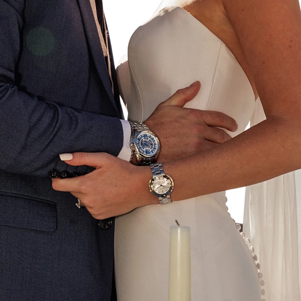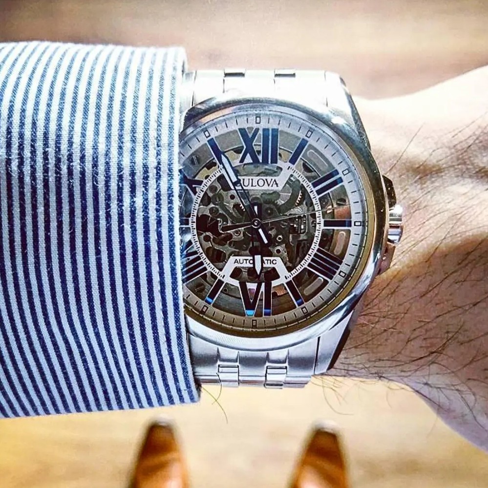 Product Description: An openworked dial puts the mechanics front and center, revealing the rhythmic motion of the automatic movement beneath. Bold Roman numerals in a vivid blue tone create strong contrast against the silver-toned architecture, giving the face depth and unmistakable presence. Luminous-style hands cut cleanly across the layered design, maintaining legibility despite the intricate detailing. Finished on a substantial stainless steel bracelet, the watch delivers a confident, modern statement with unmistakable mechanical character.