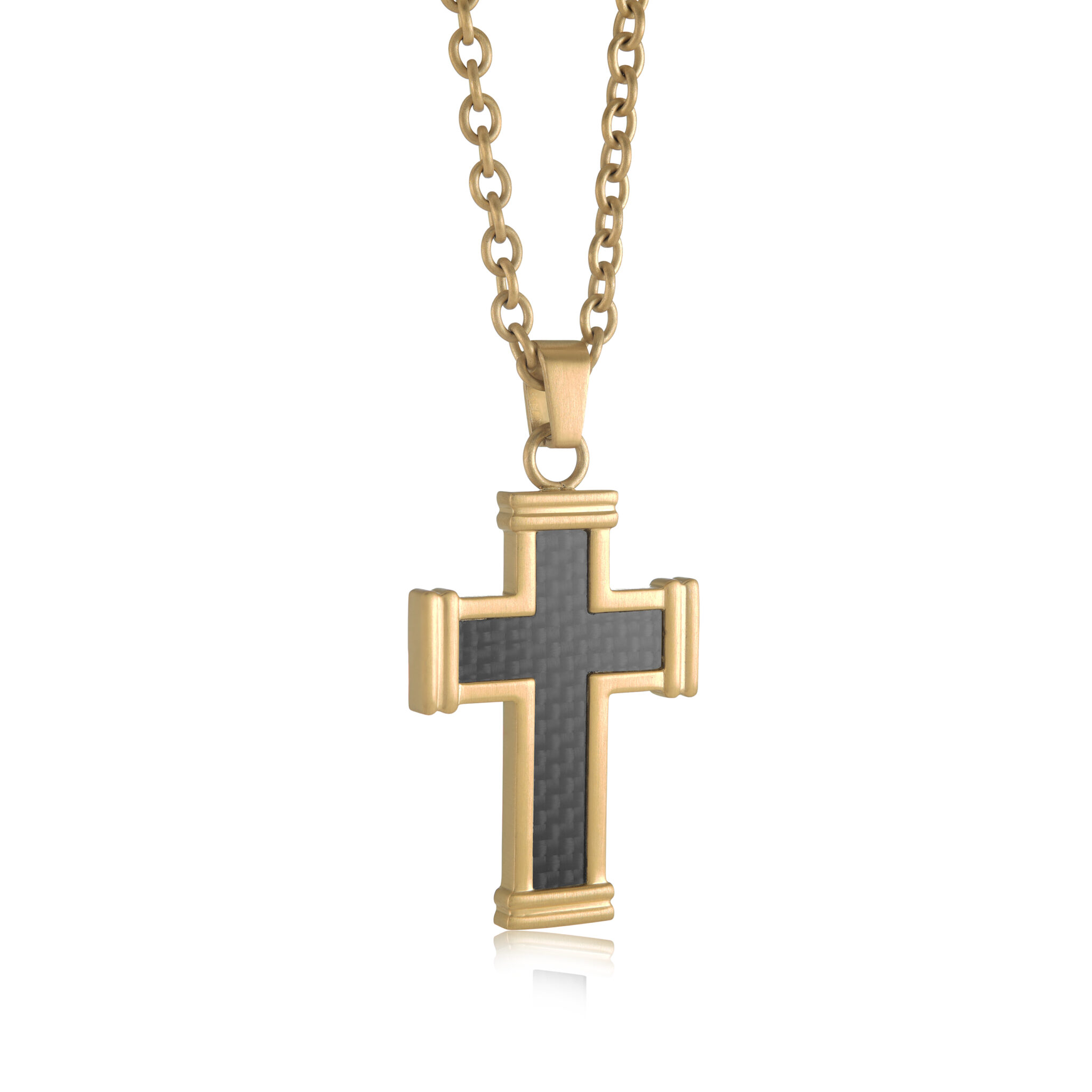 This 22-inch cross necklace features a stunning combination of gold IP and stainless steel, creating a striking and modern accessory. The cross pendant is elegantly designed, adding a touch of spirituality to any outfit while maintaining a contemporary edge. The gold ion plating enhances the necklace’s overall shine and durability, making it a perfect choice for both everyday wear and special occasions. Its versatile length allows for comfortable layering with other pieces, making it a meaningful addition to any jewelry collection that reflects personal style and faith.