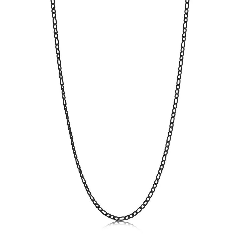 Product Description: A classic Figaro pattern takes on a bold, modern attitude with a sleek black finish. Alternating link lengths create subtle rhythm and movement, while the darkened surface gives the chain a confident, contemporary edge. Designed to wear effortlessly on its own or layered with a pendant, it drapes smoothly and feels balanced at the neckline. The overall look is clean, versatile, and unmistakably modern.
