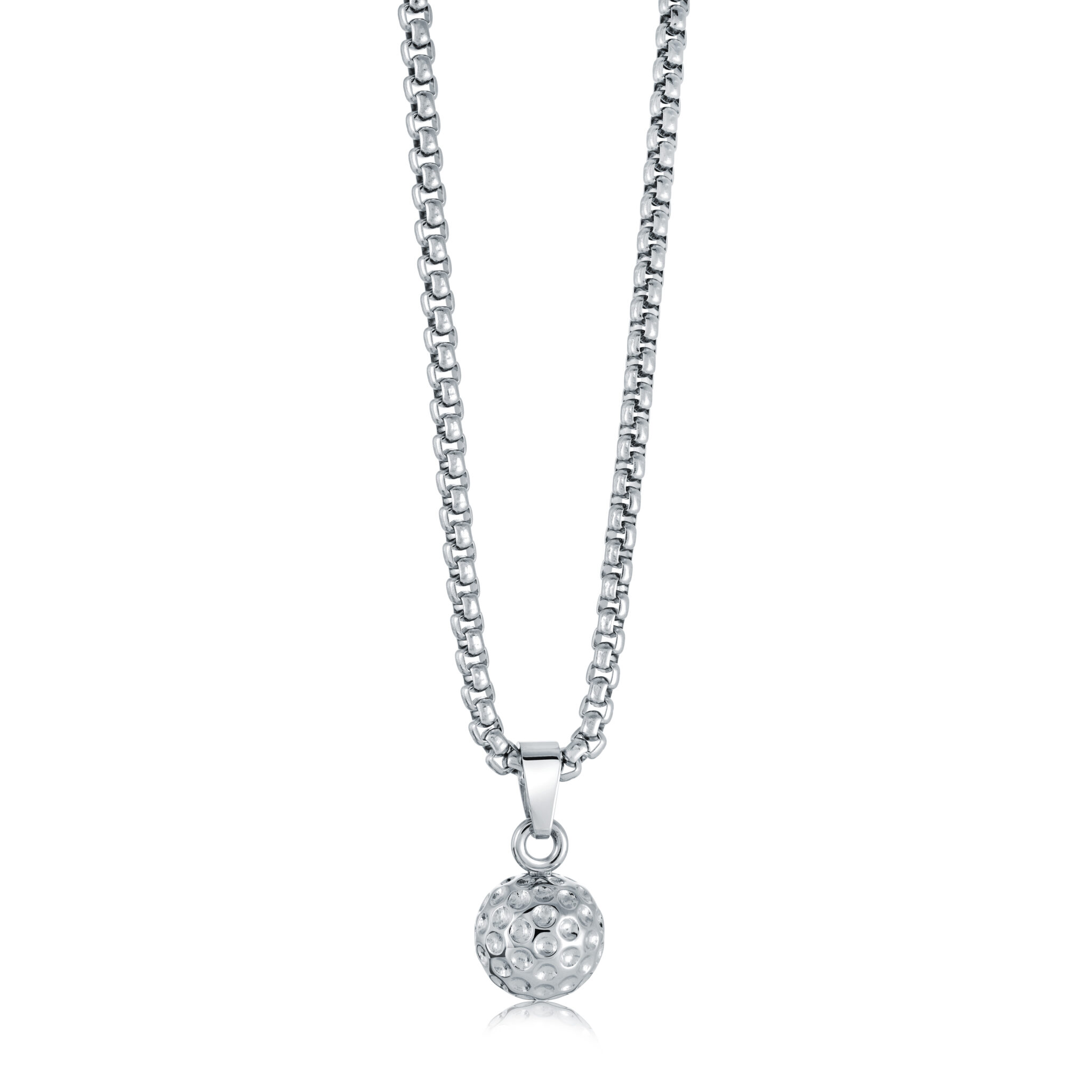 Hit the perfect style shot with this stainless steel golf ball pendant necklace. Hanging from a 22-inch chain, the intricately detailed pendant adds a sporty yet sophisticated touch to any outfit. Designed for golf enthusiasts, this durable and stylish piece is a great way to showcase your love for the game, whether on the course or off.