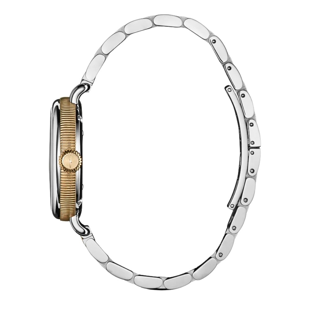 - CASE MATERIAL: Polished Stainless Steel with Gold PVD Coin Edge Detailing