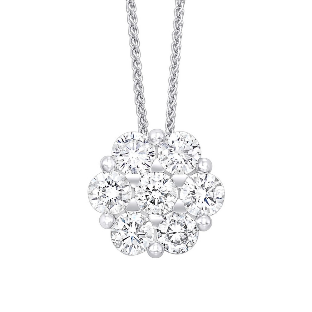 Product Description: Brimming with brilliance, this diamond cluster pendant captures the beauty of unity and light. Seven round-cut diamonds are artfully arranged in a floral-inspired pattern, creating the illusion of…
