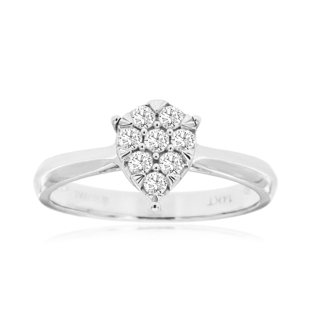 Brilliant round diamonds cluster together in a pear-shaped formation, creating a captivating display of light and symmetry. The smooth white gold band enhances the design’s clean lines and graceful profile, allowing the diamonds to take center stage. Elegant yet understated, this ring offers timeless sparkle in a modern silhouette that’s perfect for both everyday wear and special occasions.