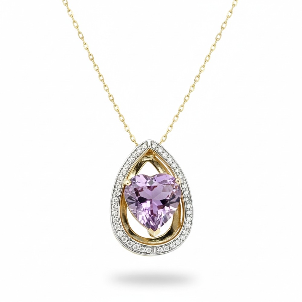YELLOW GOLD AMETHYST & DIAMOND PENDANT C3280A