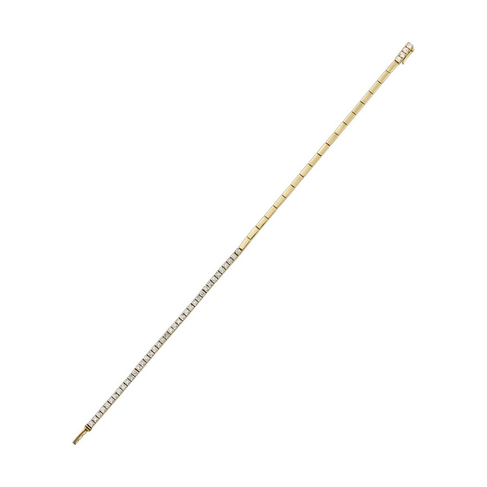 Product Description: A graceful sweep of polished yellow gold defines this bracelet, with articulated links that follow the wrist in a smooth, fluid line. Along one section, a continuous row…