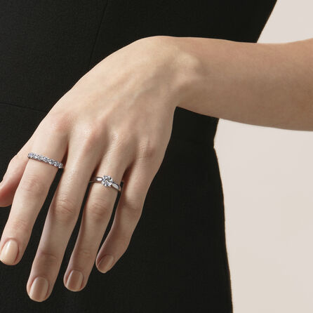 A timeless symbol of brilliance and elegance, this nine-stone diamond band showcases a breathtaking row of perfectly cut Hearts On Fire diamonds. Each stone is meticulously set to maximize fire and sparkle, creating an unbroken stream of light across the sleek, polished band. Designed for effortless sophistication, this exquisite ring is a stunning choice whether worn alone, stacked, or paired with an engagement ring for added brilliance.