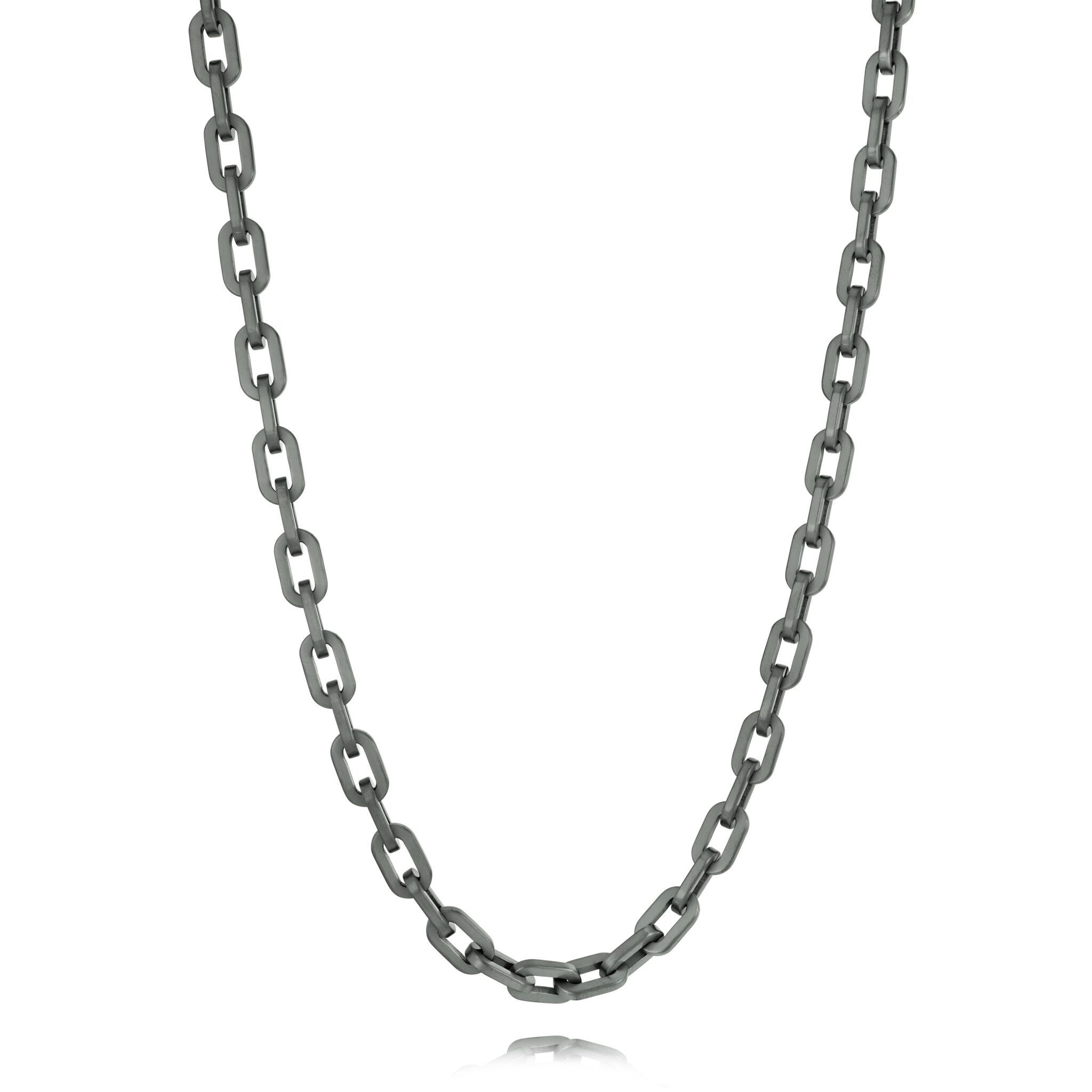 With a sleek gunmetal finish, this 22-inch chain features 7mm round links, offering a bold yet minimalist style. The robust design ensures durability, while the high-quality stainless steel construction provides a modern edge perfect for everyday wear or special occasions. This piece adds a sophisticated, industrial touch to any outfit, making it a versatile addition to any jewelry collection.